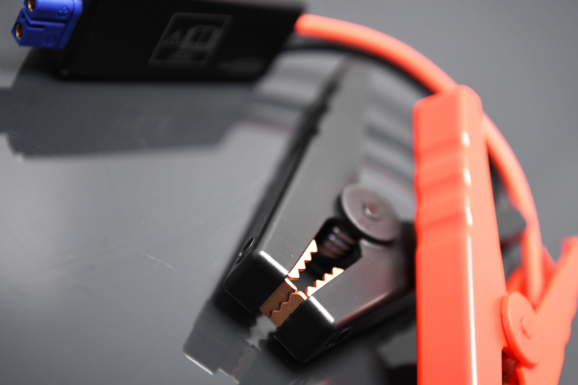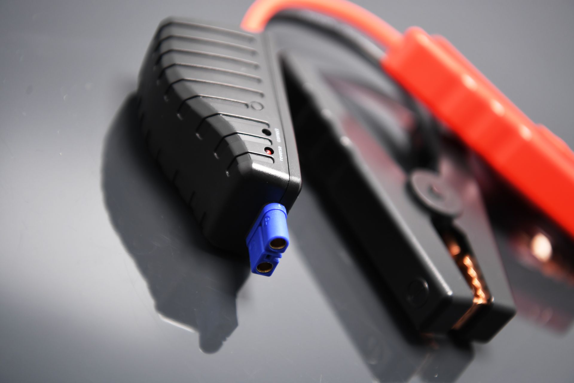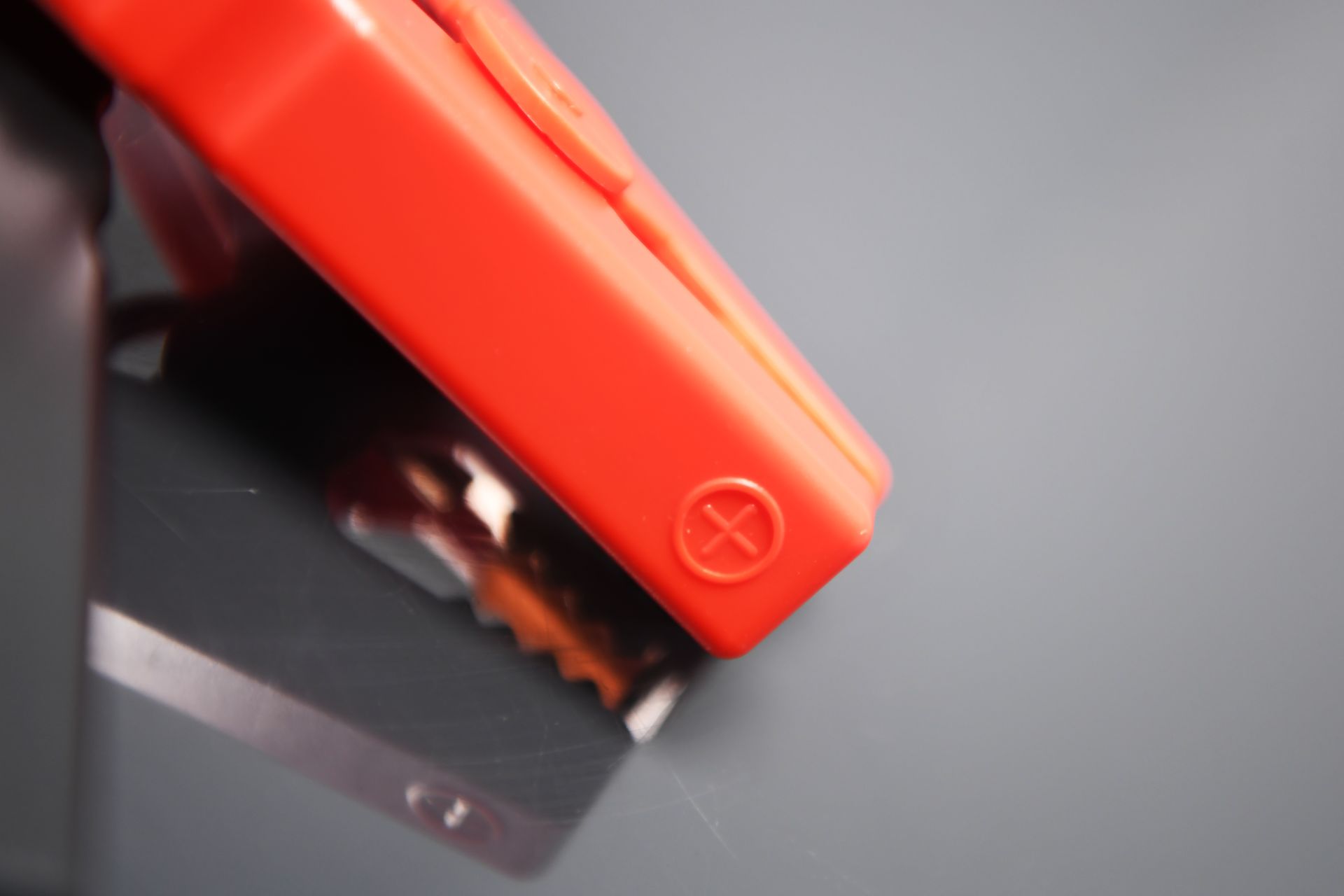 Die Klemmen sind farblich kodiert (Rot für Plus, Schwarz für Minus), was die Anwendung besonders benutzerfreundlich macht. Eine LED-Statusanzeige auf der Oberseite informiert den Benutzer jederzeit über den aktuellen Ladezustand des Geräts sowie über den Betrieb.