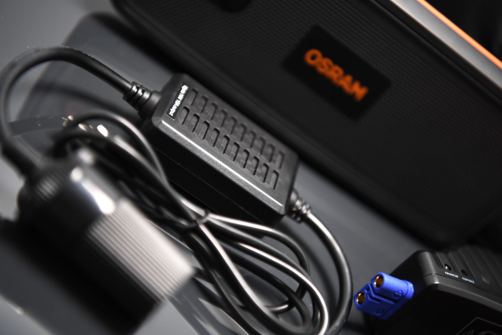 Der OSRAM BATTERYstart 400 besticht durch sein kompaktes und leichtes Design, das ihn besonders handlich und transportabel macht. Das Gehäuse ist aus robustem, stoßfestem Kunststoff gefertigt, was eine hohe Widerstandsfähigkeit gegen äußere Einflüsse gewährleistet. Die Oberfläche ist in einem matten Schwarz gehalten, ergänzt durch rote Akzente, die den sportlichen und zugleich professionellen Charakter des Geräts unterstreichen.