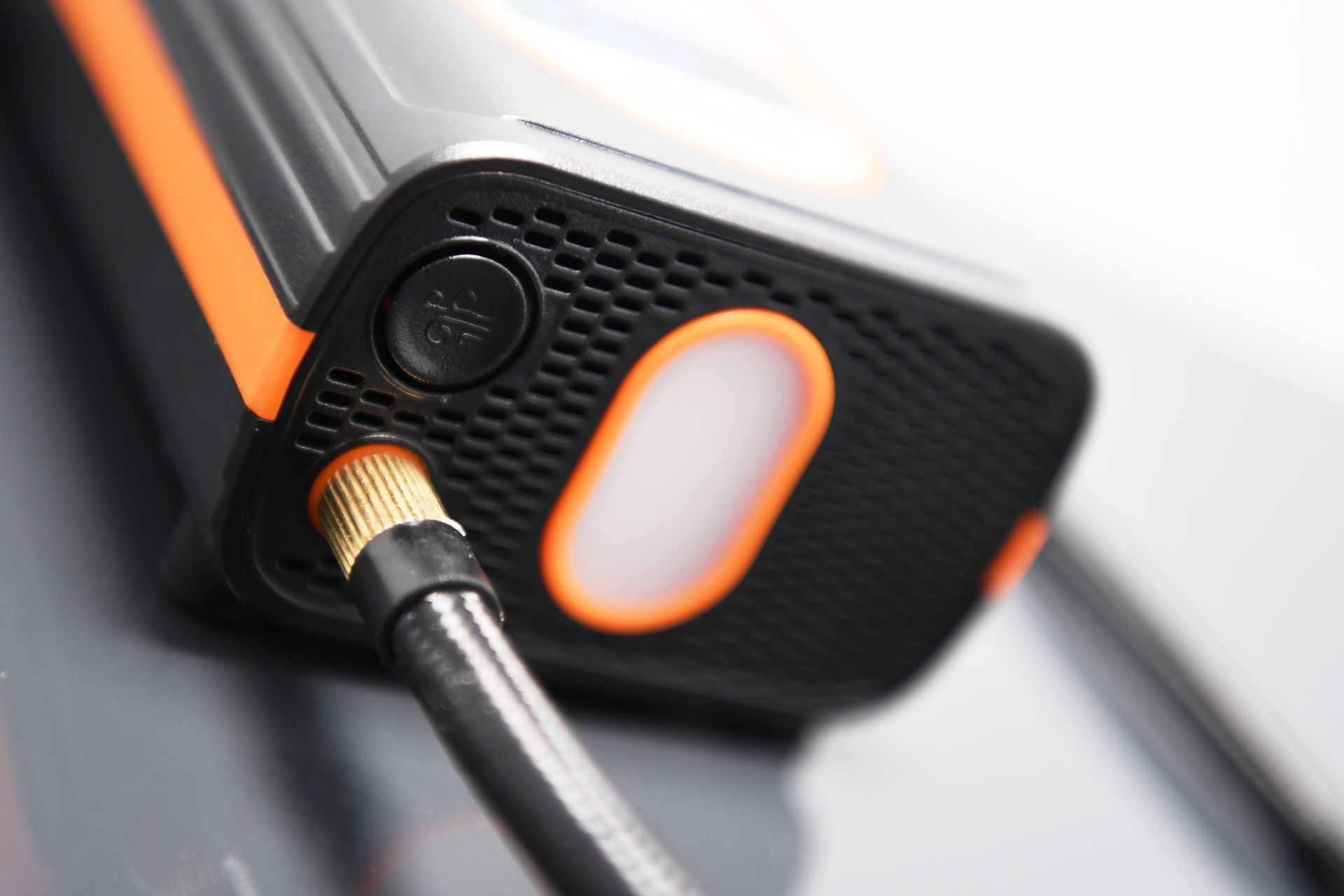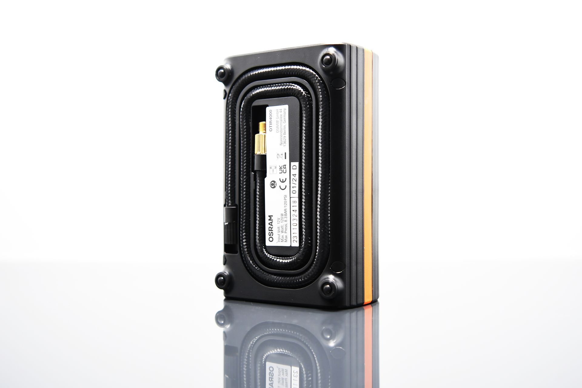 Der OSRAM TYREinflate 4000 besticht durch ein modernes und funktionales Design, das gleichzeitig robust und leicht zu handhaben ist. Die schwarze und graue Farbgebung verleiht dem Gerät ein professionelles Aussehen, das durch orangefarbene Akzente unterstrichen wird – ein typisches Merkmal der OSRAM-Produktreihe. Das kompakte und ergonomische Design ermöglicht eine einfache Lagerung im Kofferraum, Handschuhfach oder in der Garage, ohne viel Platz einzunehmen.
