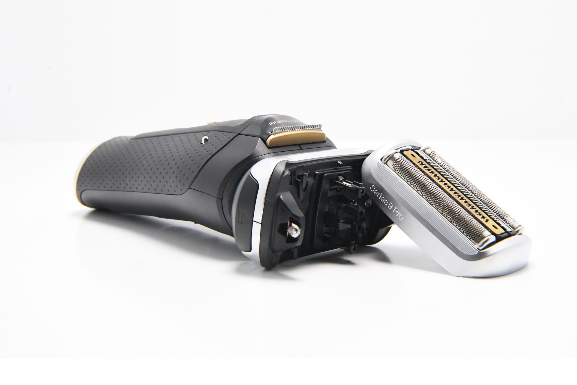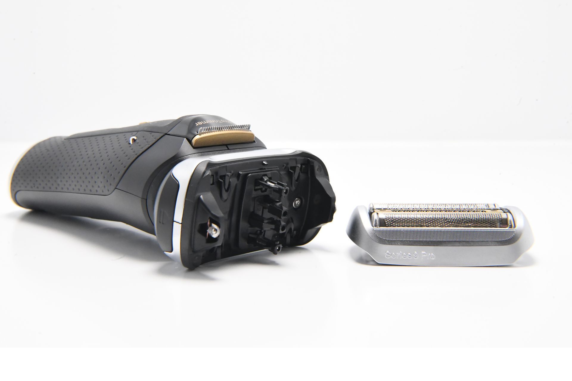 Der Scherkopf des Braun Series 9 Pro + ist das wahre Herzstück des Rasierers. Er ist mit vier einzelnen Rasierabschnitten ausgestattet, die durch Federn gelagert sind, sodass sich jede Einheit unabhängig an die Konturen des Gesichts anpassen kann. In der Mitte des Scherkopfs befinden sich zwei grobe Rasierfunktionen, die für längere Barthaare geeignet sind, während die feineren Rasiermesser an den oberen und unteren Rändern des Scherkopfs für präzise Rasuren sorgen.