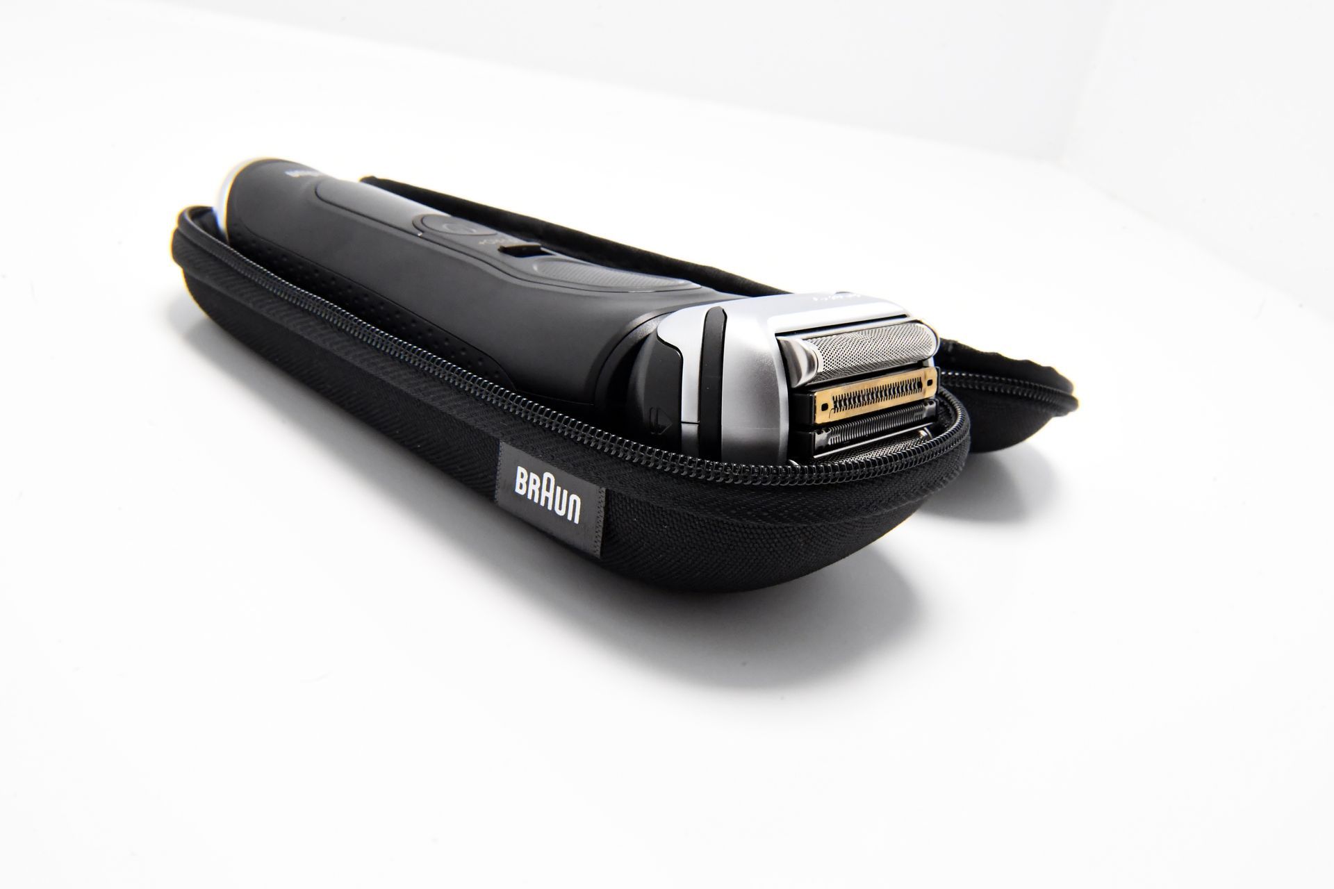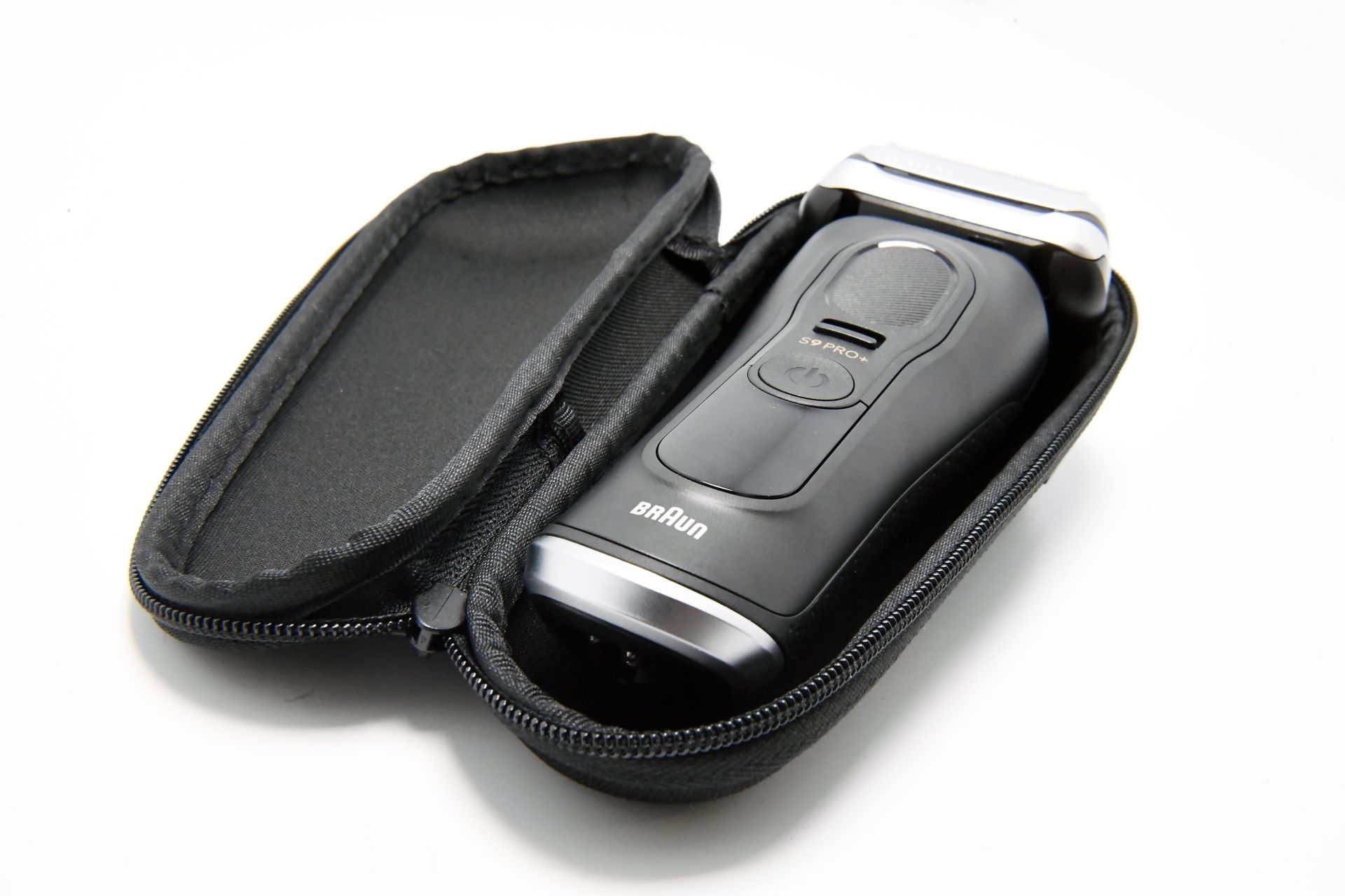 Neben der Lade- und Reinigungsstation wird der Braun Series 9 Pro + auch mit einem praktischen Reiseetui geliefert. Das Etui ist robust und schützt den Rasierer zuverlässig vor Stößen und Kratzern während des Transports. Der Reißverschluss des Etuis lässt sich leicht öffnen und schließen, sodass der Rasierer sicher verstaut werden kann. Ein kleiner Verbesserungsvorschlag wäre, das Etui etwas größer zu gestalten, damit auch das Ladekabel darin Platz finden könnte. Dennoch ist das Etui ein durchdachtes Accessoire, das den Rasierer unterwegs gut schützt.
