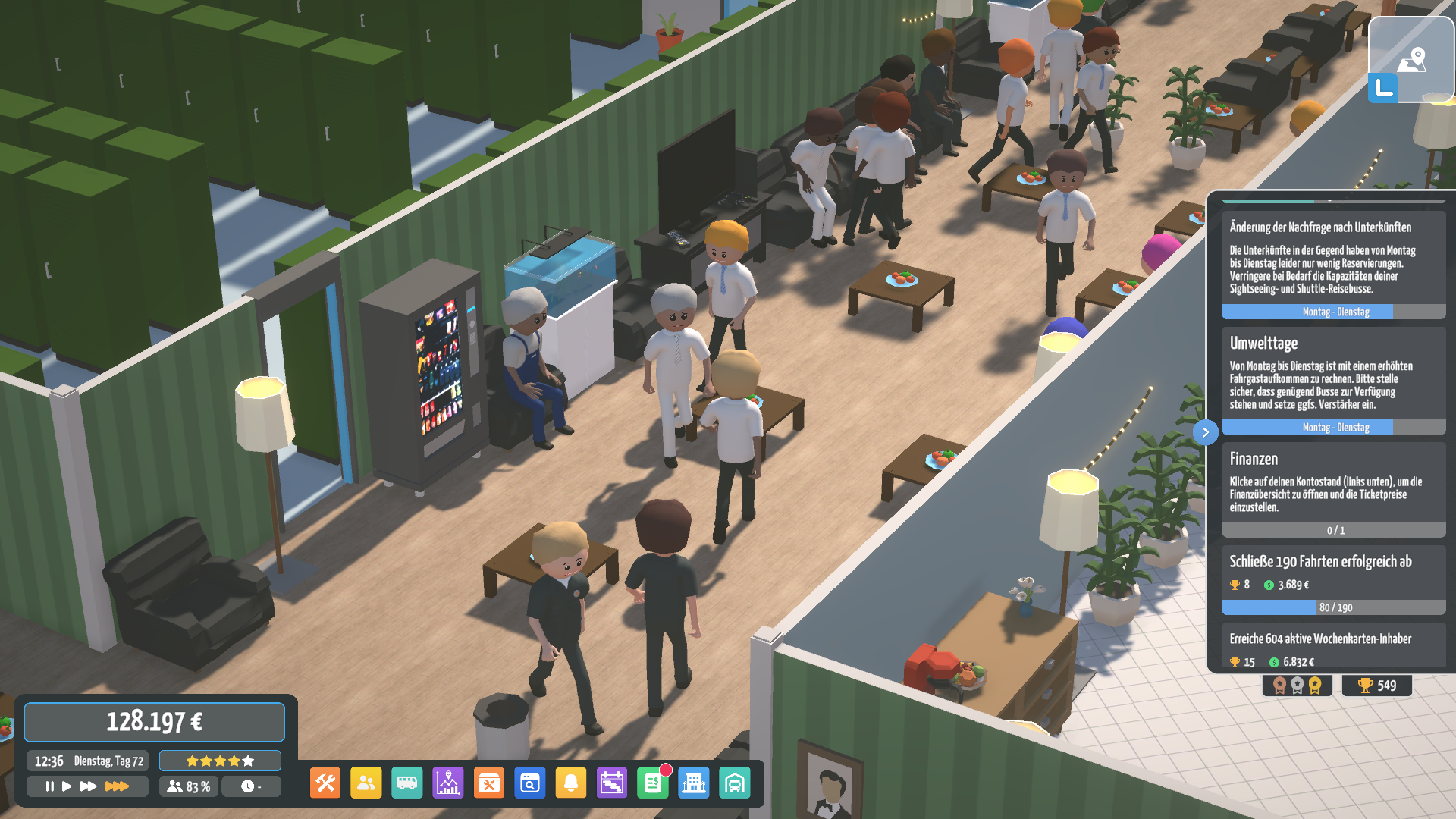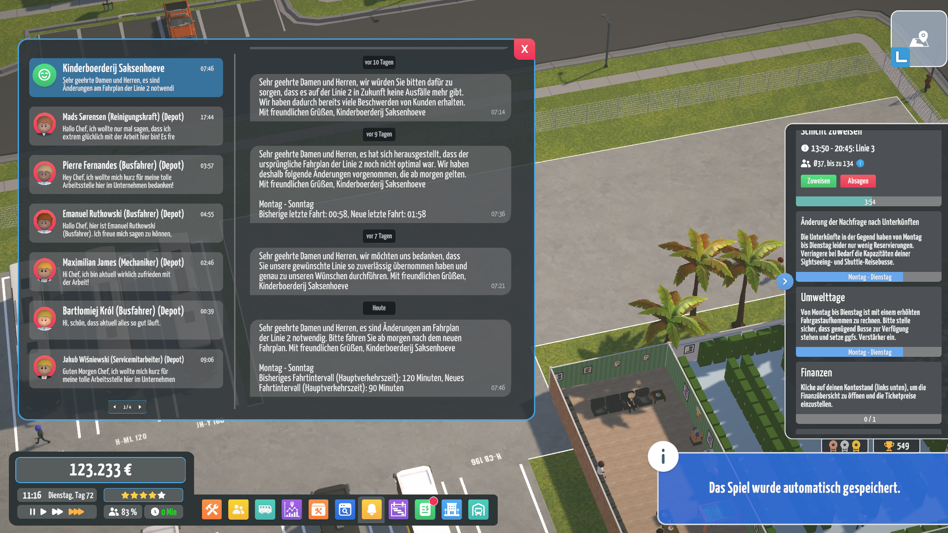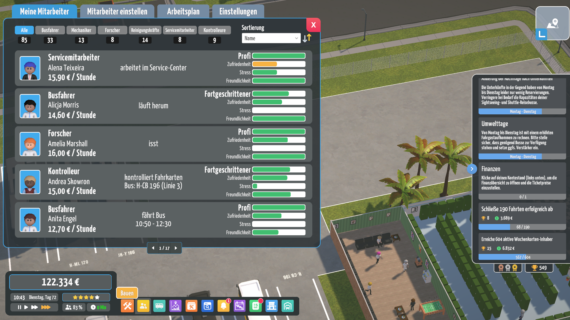 „City Bus Manager“ ist kein Spiel, das sich sofort und leicht erschließt. Es gibt eine steile Lernkurve, insbesondere für Spieler, die nicht vertraut mit Management- und Simulationsspielen sind. Die Vielzahl an Parametern, die man im Auge behalten muss – von der finanziellen Verwaltung bis hin zur Zufriedenheit der Fahrgäste – kann anfangs überwältigend sein. Es gibt jedoch ein hilfreiches Tutorial, das die Grundlagen des Spiels erklärt. Dennoch ist es ratsam, sich Zeit zu nehmen und die verschiedenen Mechaniken Schritt für Schritt zu erlernen.