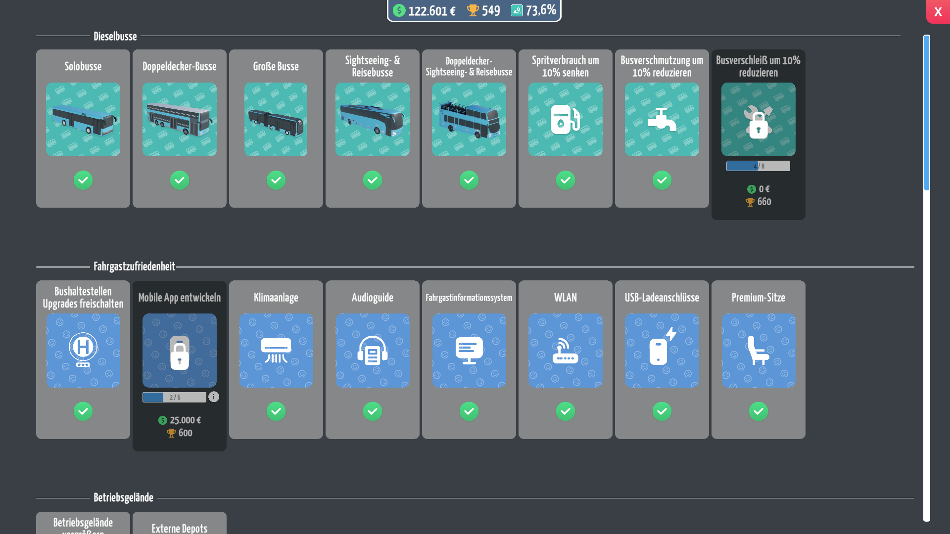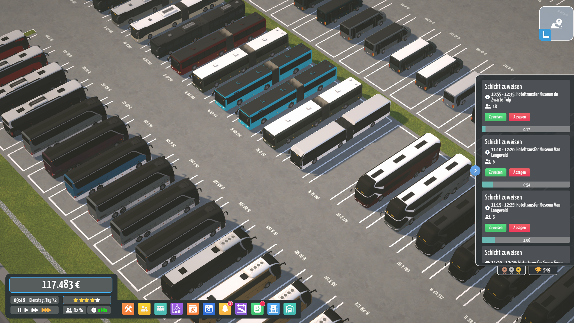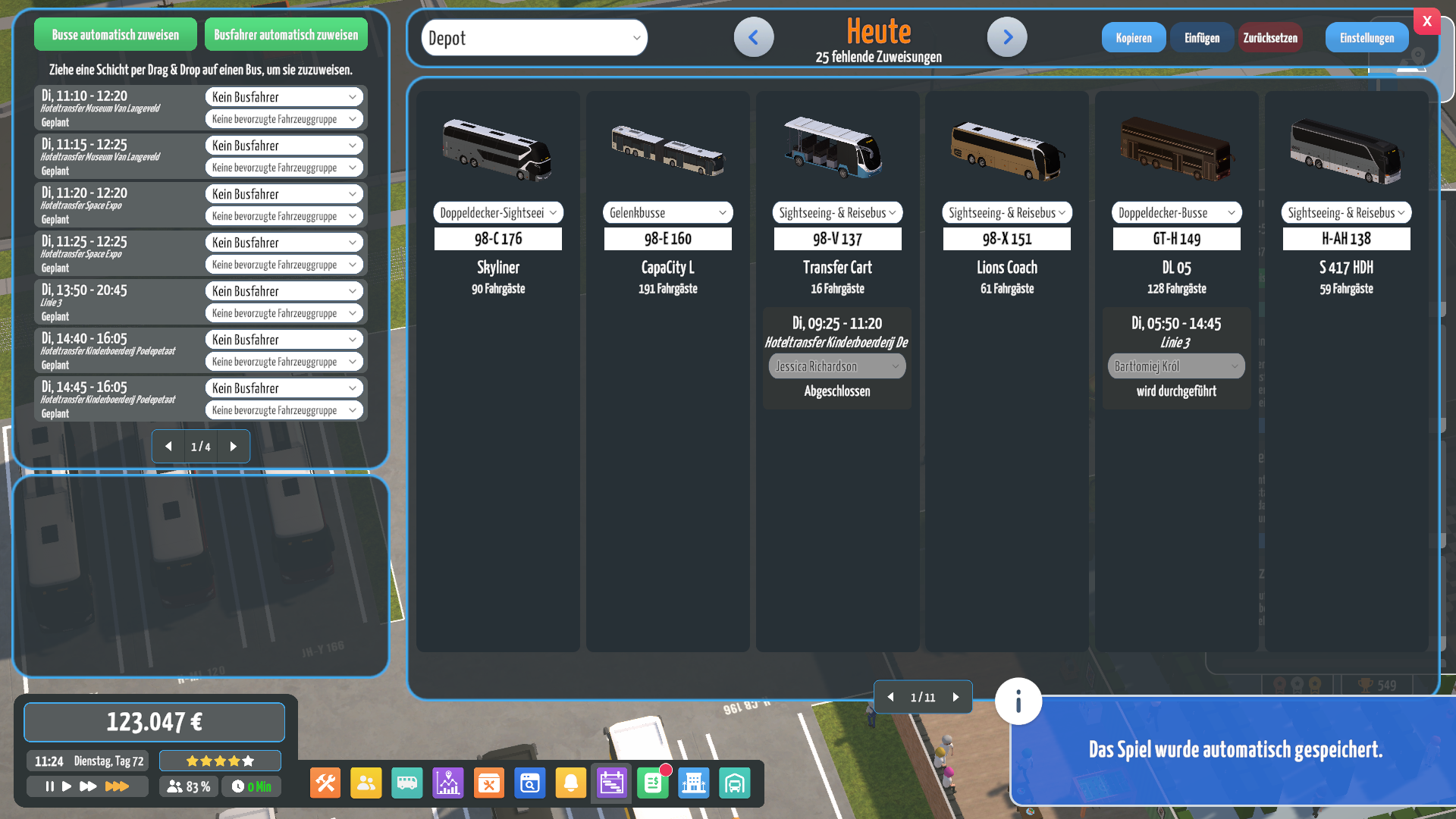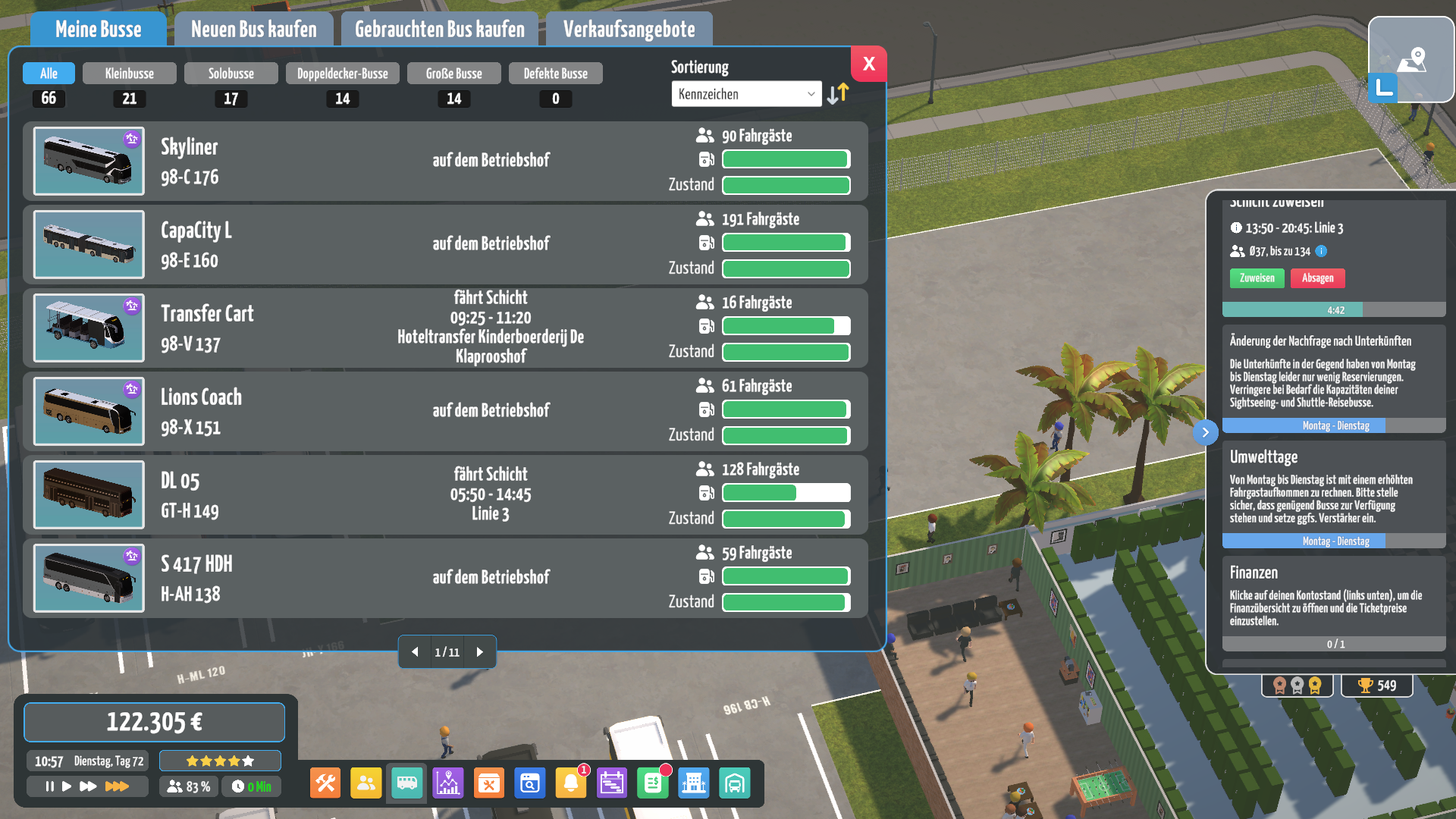 Ein weiteres interessantes Element ist der Bau und die Verwaltung des eigenen Busdepots. Das Depot ist der zentrale Hub, in dem alle Busse gewartet, repariert und gereinigt werden. Hier muss der Spieler entscheiden, welche Einrichtungen und Ressourcen er hinzufügt, um die Effizienz zu maximieren. Werkstätten, Waschanlagen und sogar Pausenräume für die Mitarbeiter sind notwendig, um einen reibungslosen Betrieb sicherzustellen.
