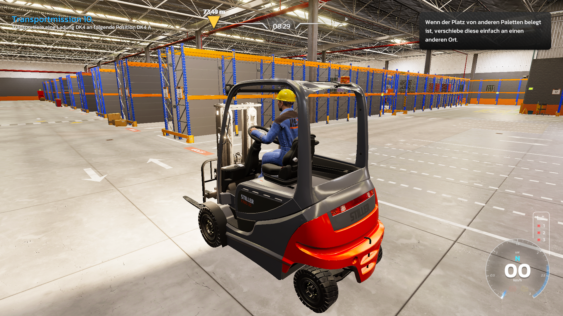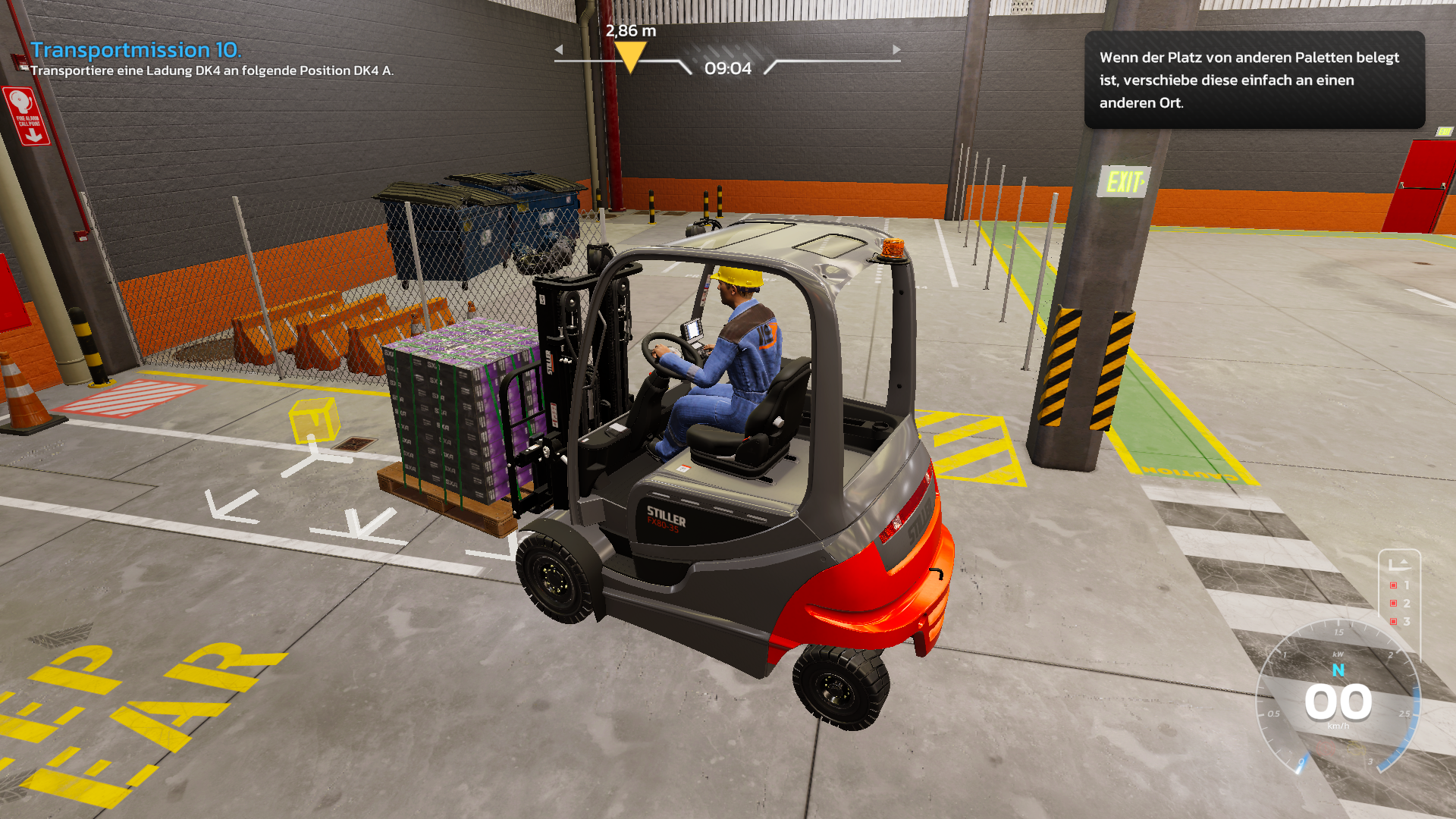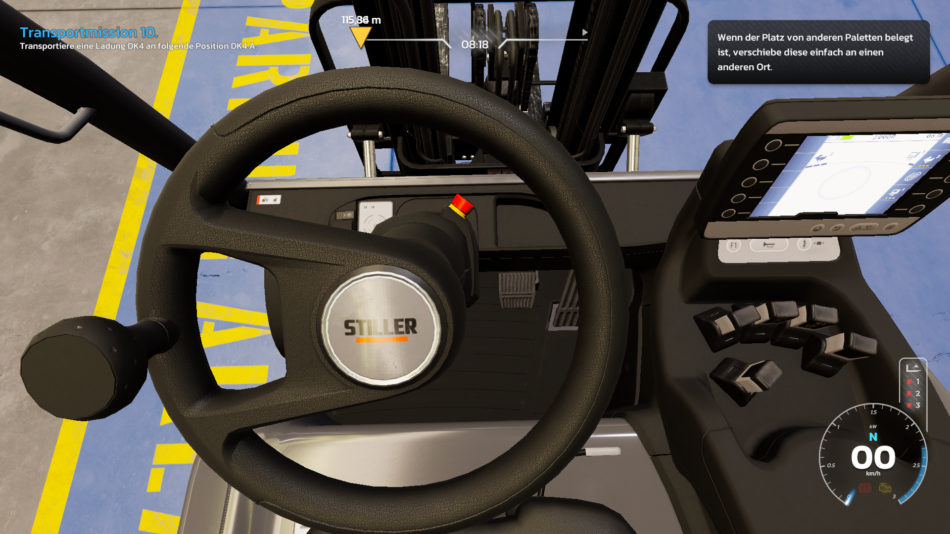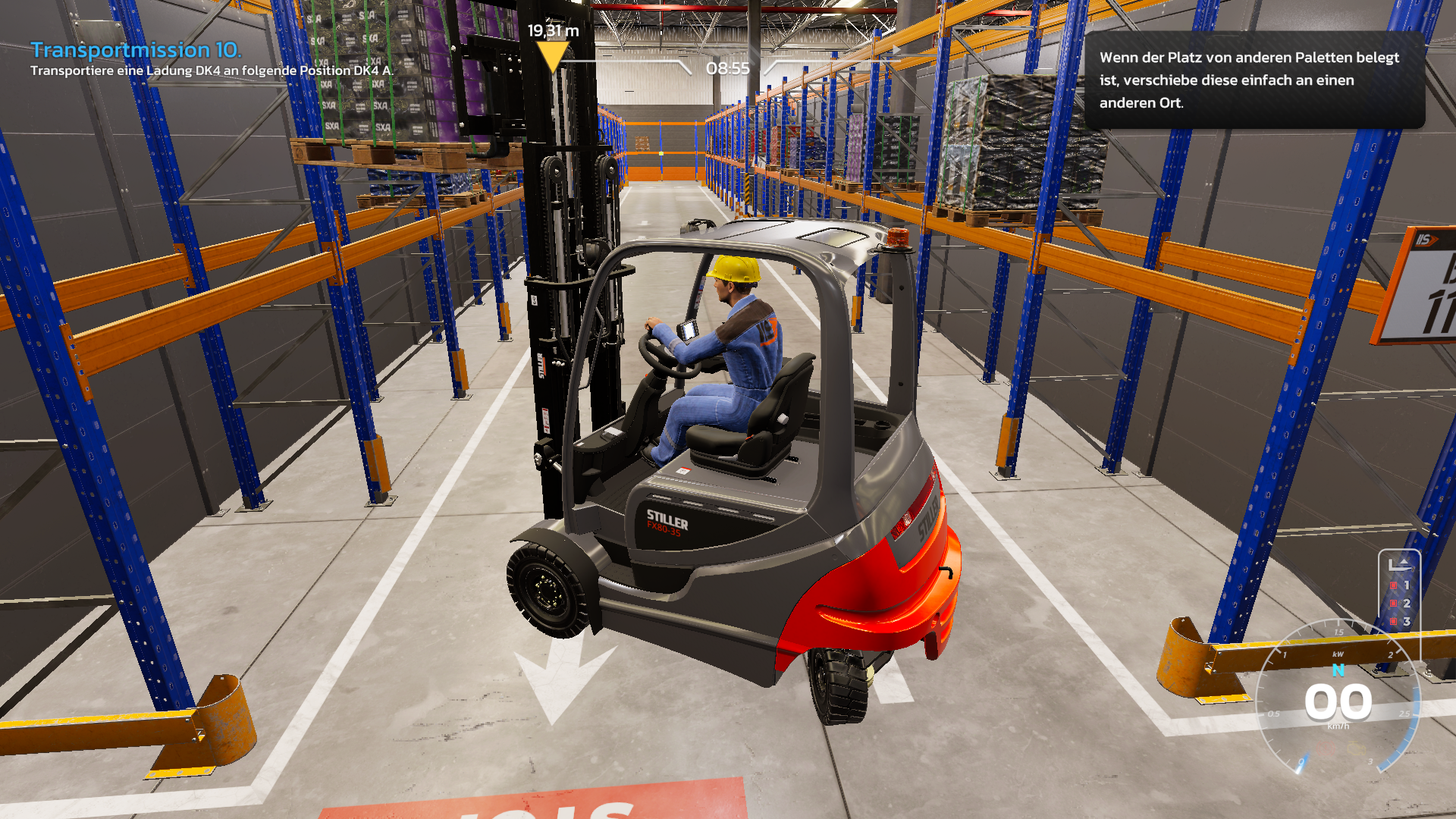 Das Herzstück des Gameplays ist die Genauigkeit. Es ist nicht damit getan, Paletten nur von Punkt A nach Punkt B zu transportieren; vielmehr erfordert das Spiel eine feine Steuerung des Gabelstaplers, um Waren korrekt zu platzieren. Dies wird durch ein realistisches Physiksystem unterstützt, das das Gewicht und die Stabilität der Ladung berücksichtigt. Ein falscher Winkel oder eine zu hohe Geschwindigkeit kann leicht dazu führen, dass eine Palette kippt oder beschädigt wird. Solche Fehler zwingen den Spieler, vorsichtig und strategisch zu handeln.