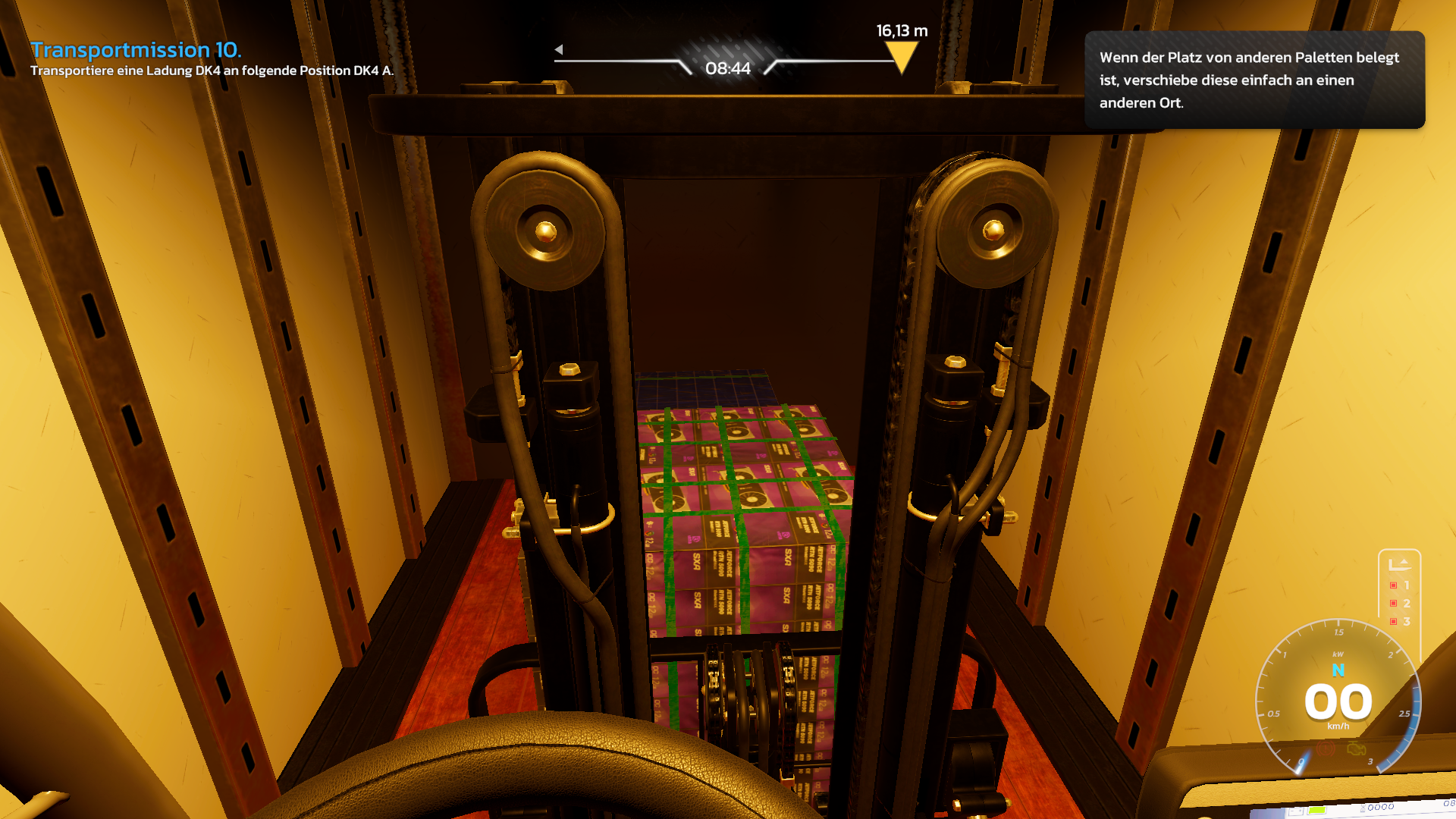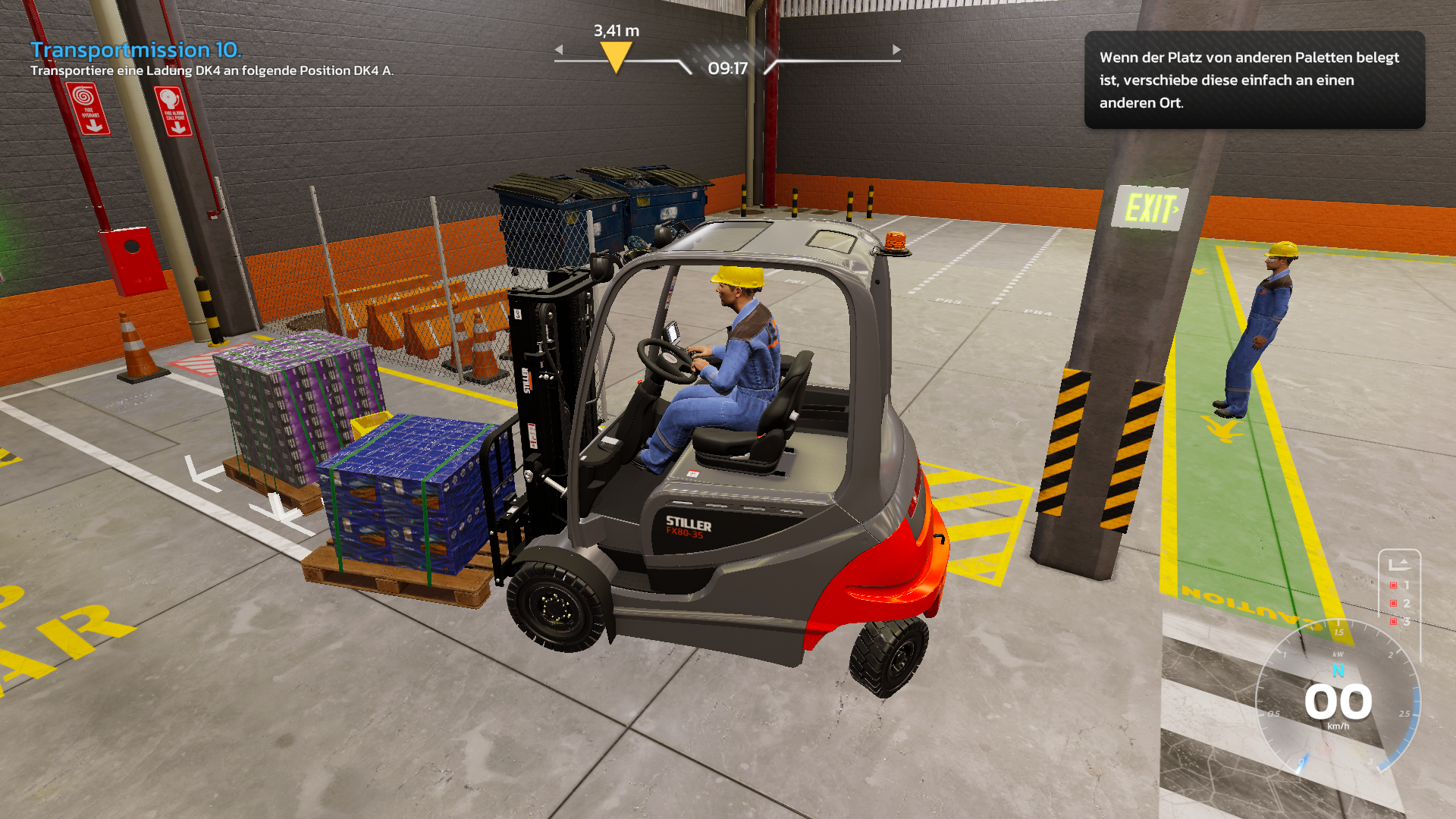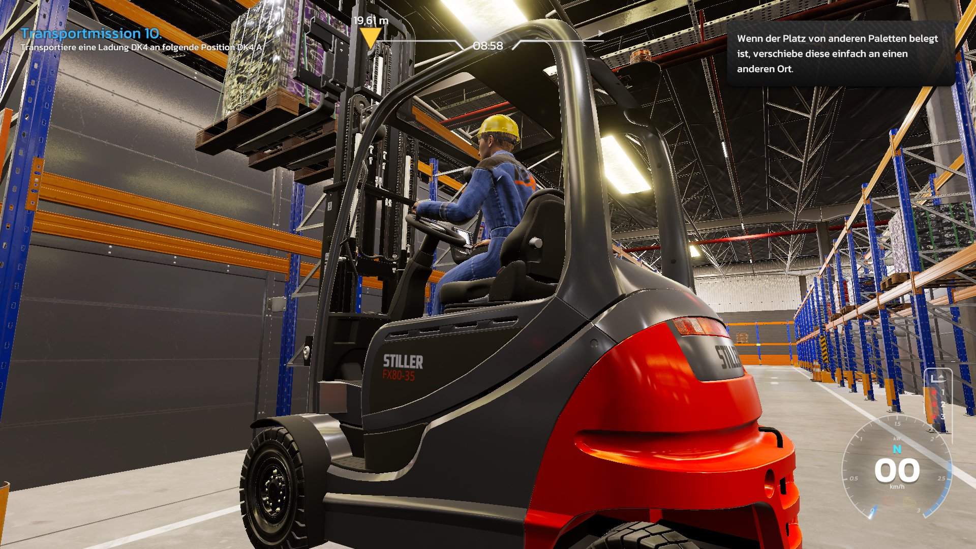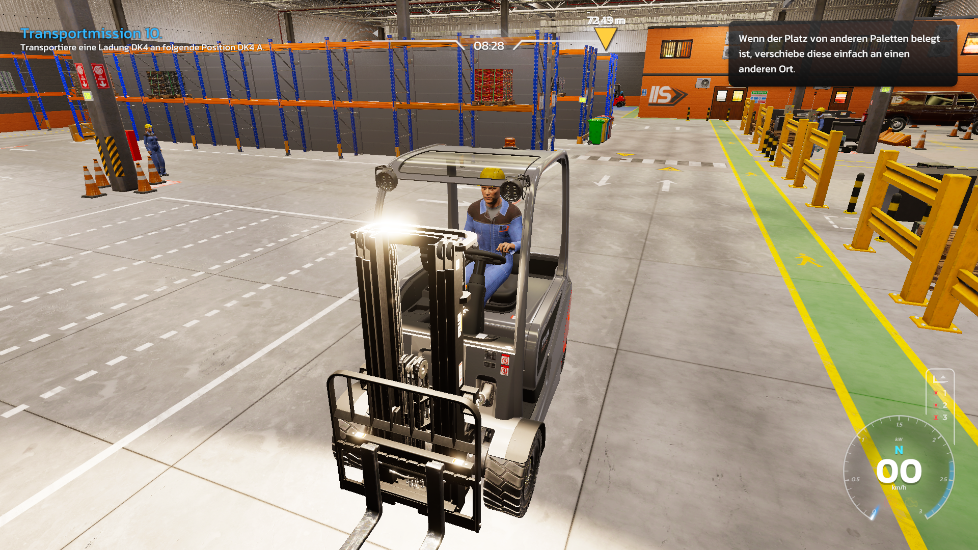 Das Herzstück des Gameplays ist die Genauigkeit. Es ist nicht damit getan, Paletten nur von Punkt A nach Punkt B zu transportieren; vielmehr erfordert das Spiel eine feine Steuerung des Gabelstaplers, um Waren korrekt zu platzieren. Dies wird durch ein realistisches Physiksystem unterstützt, das das Gewicht und die Stabilität der Ladung berücksichtigt. Ein falscher Winkel oder eine zu hohe Geschwindigkeit kann leicht dazu führen, dass eine Palette kippt oder beschädigt wird. Solche Fehler zwingen den Spieler, vorsichtig und strategisch zu handeln.