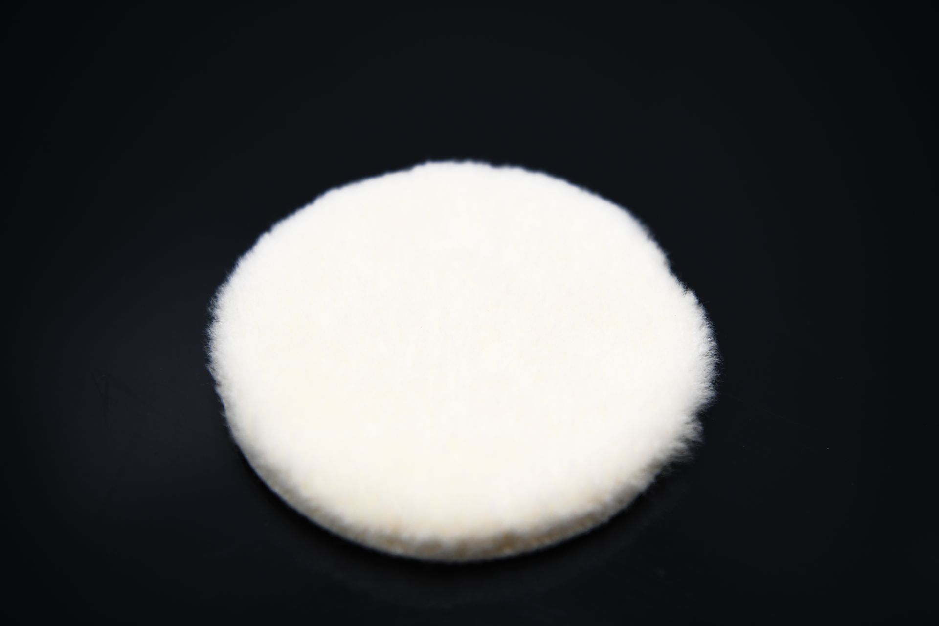 Das Pad ist an der Polierfläche in einem natürlichen Wollweiß gehalten, das typisch für Lammwollprodukte ist. Die Rückseite, die mit der Poliermaschine verbunden wird, ist schwarz. Diese Farbkombination ist nicht nur optisch ansprechend, sondern auch funktional, da sie dem Benutzer eine einfache Unterscheidung zwischen Vorder- und Rückseite ermöglicht und so für eine schnelle und präzise Anwendung sorgt.