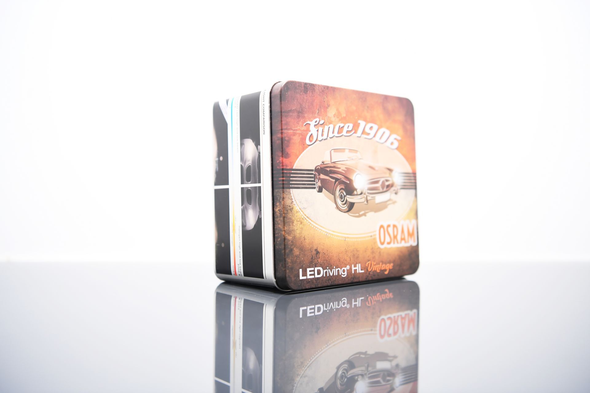 Beim Auspacken fiel mir sofort die edle Verpackung der OSRAM LEDriving HL VINTAGE auf. Die LED-Lampen werden in einer ansprechend gestalteten Metallschachtel geliefert, die mit einem stilvollen, lackierten Deckel versehen ist. Dieses Design erinnert an eine Zeit, als Produkte nicht nur funktional, sondern auch optisch ansprechend und langlebig verpackt wurden. Im Gegensatz zu vielen modernen Produkten, wie der Night Breaker-Serie, die in Kartons ausgeliefert werden, punktet die Vintage-Linie bereits hier mit einem Hauch von Nostalgie. Die Metallschachtel bietet zudem nach dem Einbau der Lampen praktischen Nutzen als Aufbewahrungsbox für andere Kleinteile.