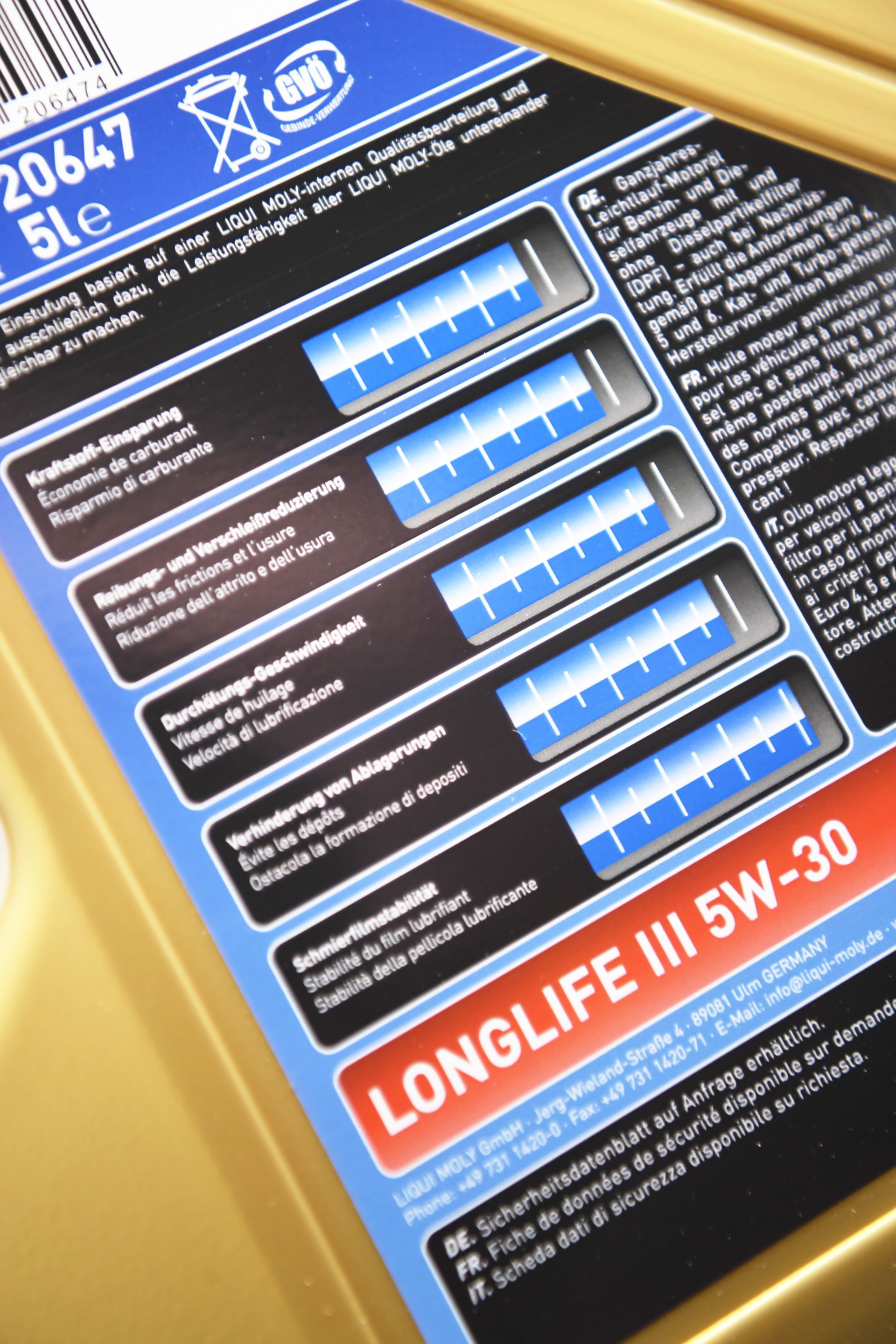 Produkttest: Liqui Moly LONGLIFE III 5W-30 Öl im 5-Liter-Kanister
