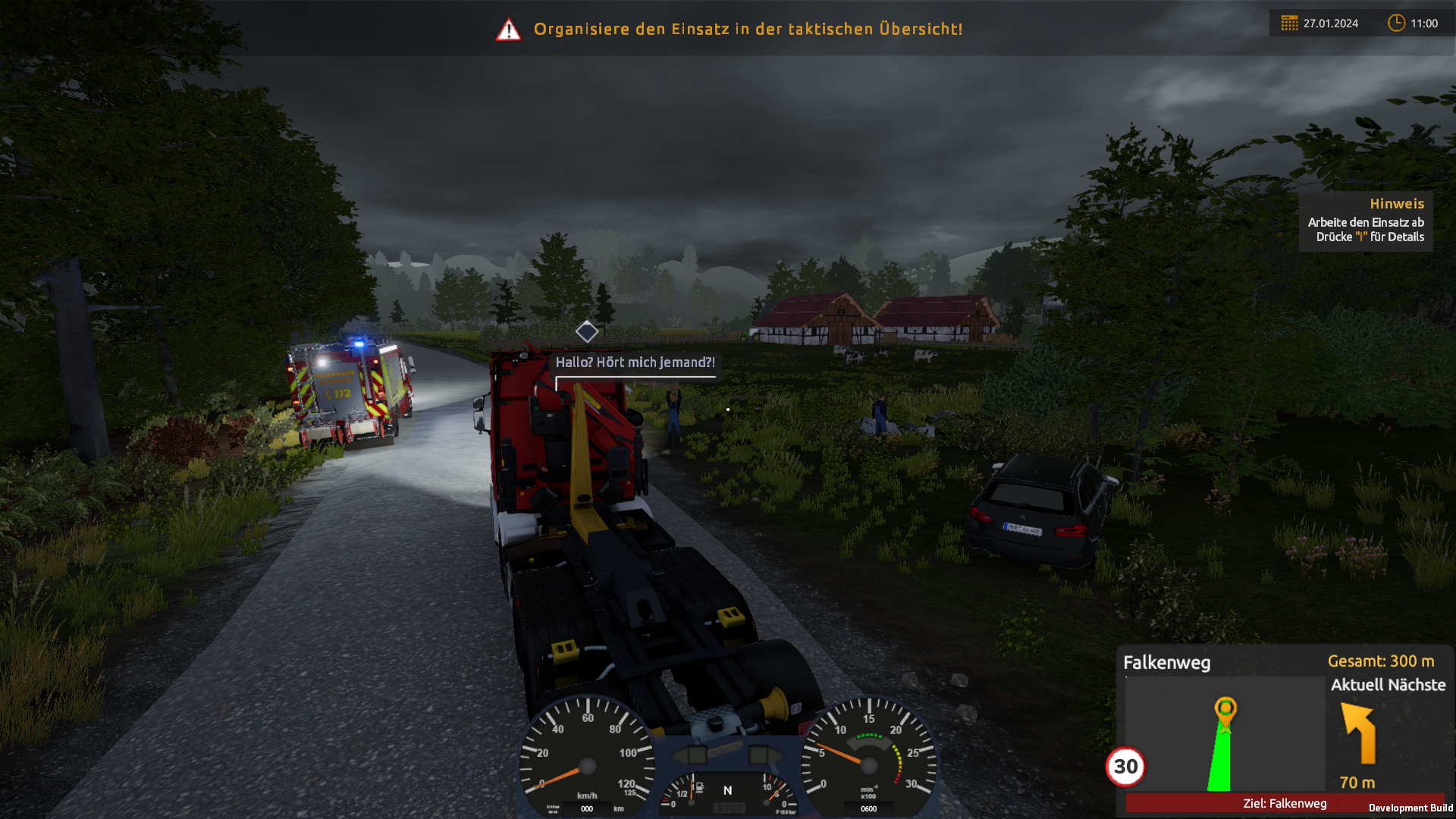 Dynamische Einsätze: Im Laufe der Mission können neue Szenarien wie ein Gefahrgutunfall oder ein größerer Gebäudebrand auftreten, bei dem zusätzliche WLF-Fahrten notwendig sind.