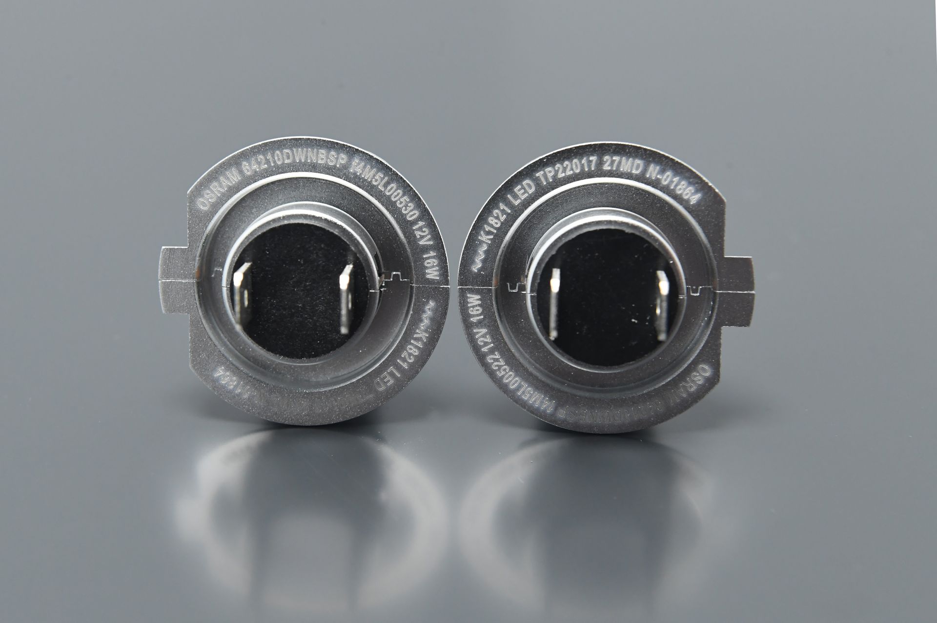 Der Sockel der neuen LED-Lampe bleibt unverändert und entspricht der bekannten H7-Fassung. Dies bedeutet, dass die Lampe problemlos in die dafür vorgesehenen Öffnungen des Scheinwerfers eingesetzt werden kann, ohne dass zusätzliche Anpassungen notwendig sind. An der Unterseite der Lampe finden sich keine Kühlkörper oder Ventilatoren mehr. Stattdessen ist die Lampe schlicht und funktional aufgebaut, mit den beiden Füßen des Sockels, die direkt mit dem Fahrzeugstromkabel verbunden werden können. Trotz des vereinfachten Designs bietet die neue Lampe eine erstaunlich lange Lebensdauer, die bis zu sechsmal länger ist als die herkömmlicher Halogenlampen. Auch in Sachen Vibrationsresistenz hat Osram nachgebessert, sodass die Lampe auch auf unebenen Straßen zuverlässig funktioniert.