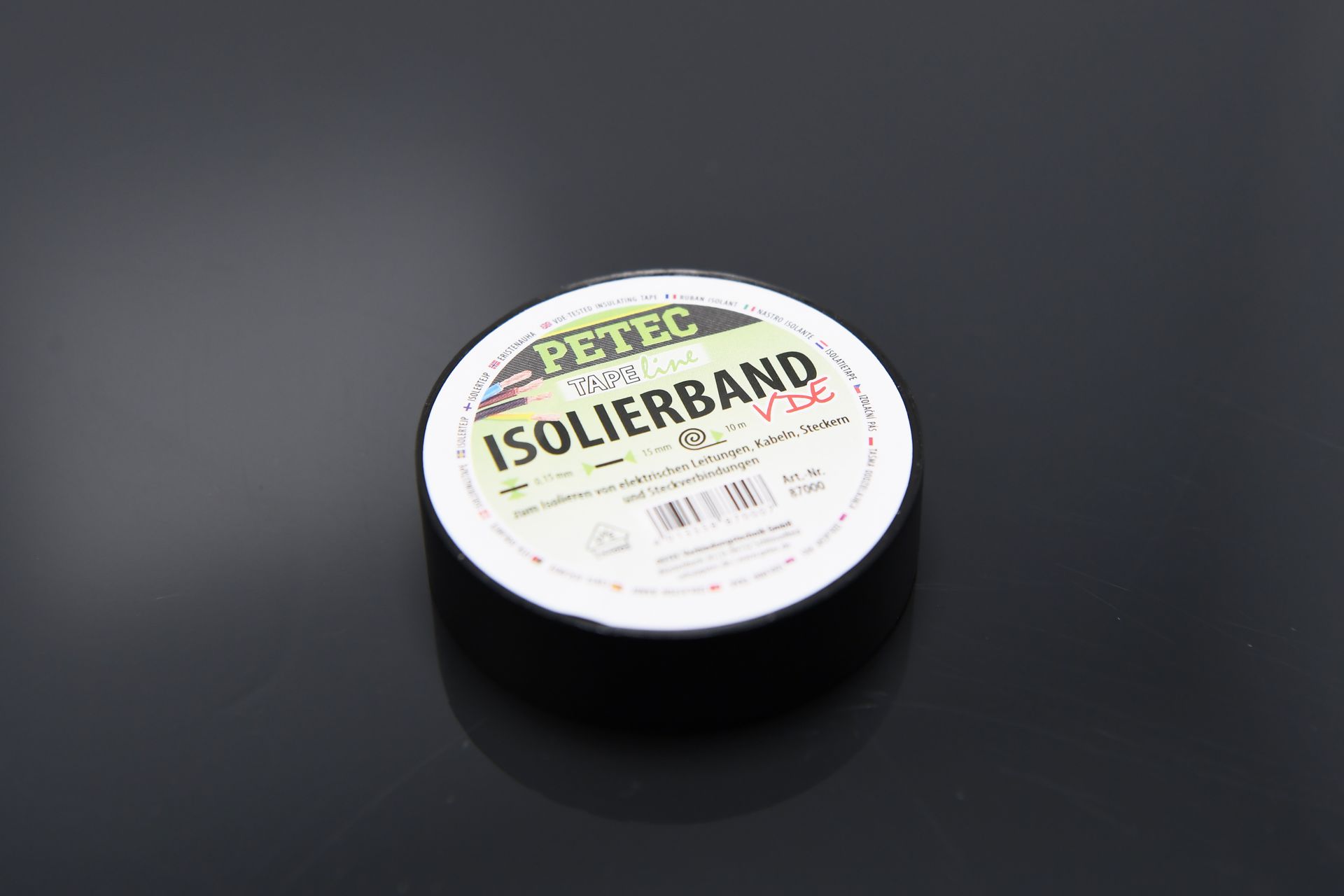 Farbe: Das PETEC Isolierband ist in verschiedenen Farben erhältlich, darunter Schwarz, Rot, Blau, Grün und Gelb, was es ideal für Farbcodierungen und Kennzeichnungen macht.