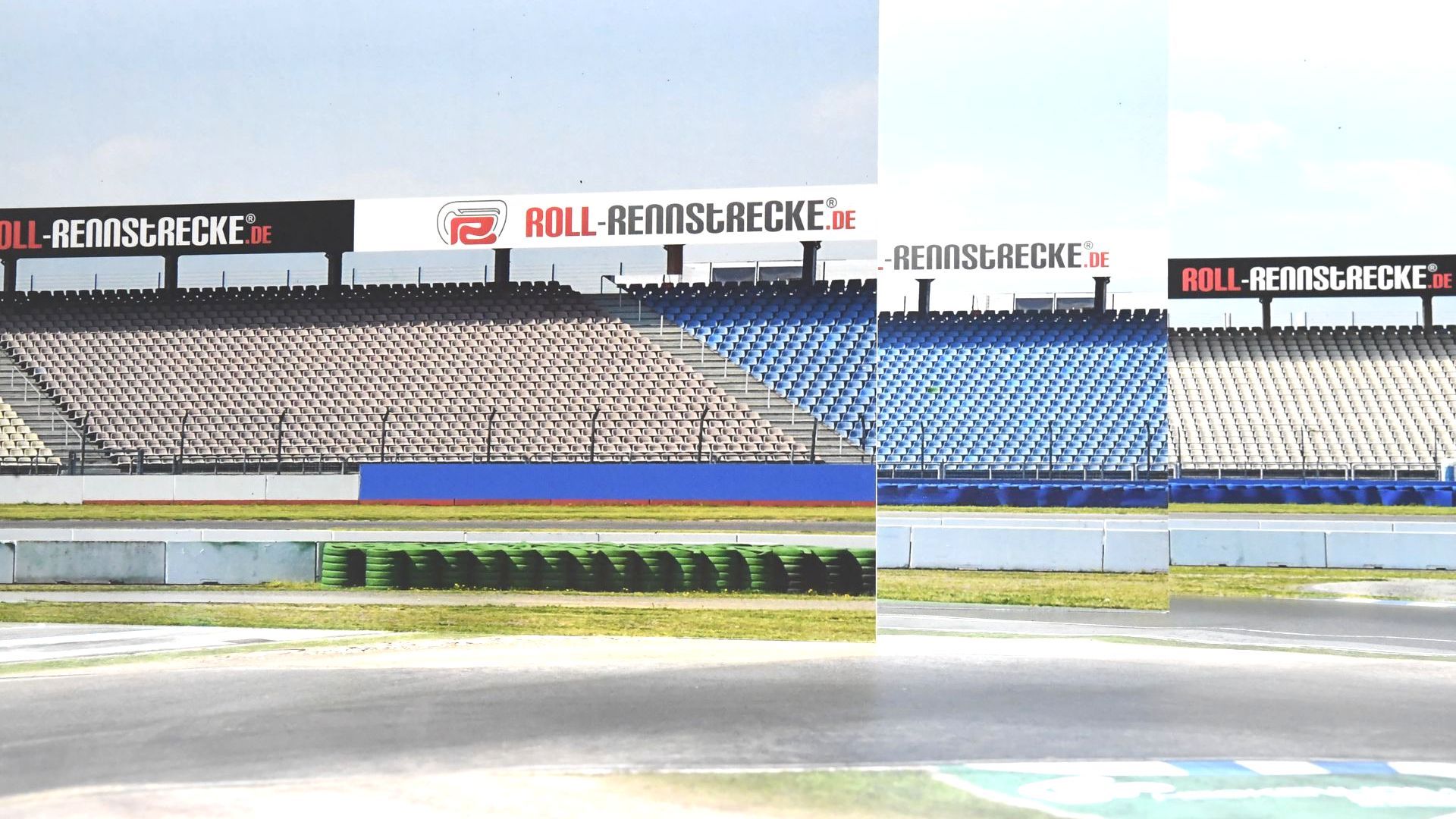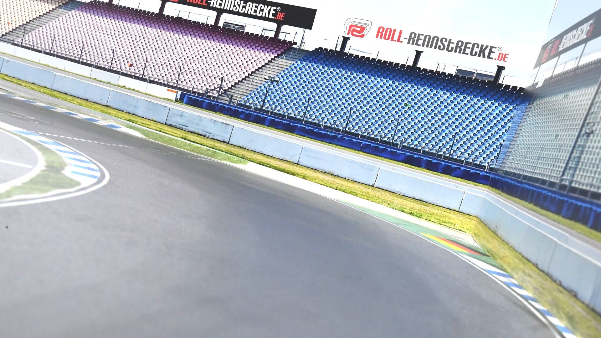 Ein besonderes visuelles Highlight sind die Panorama-Tribünen. In unserem Test installierten wir eine dreiteilige Version mit fotorealistischer Grafik und stabiler Pappkonstruktion. Mit einer Breite von 300 Zentimetern und einer Höhe von 50 Zentimetern ist die Tribüne ein echter Blickfang. Ihre brillante Druckqualität und der einfache Aufbau dank klappbarer Standfüße runden das Gesamtbild ab. Durch clevere Positionierung entsteht ein nahezu nahtloser Übergang zwischen Strecke und Tribüne – ein Effekt, der das Rennambiente perfekt macht. Die Tribünen sind in 13 unterschiedlichen Designs erhältlich, von klassischer Rennkulisse bis hin zu Burgmauern oder amerikanischen Landschaften.