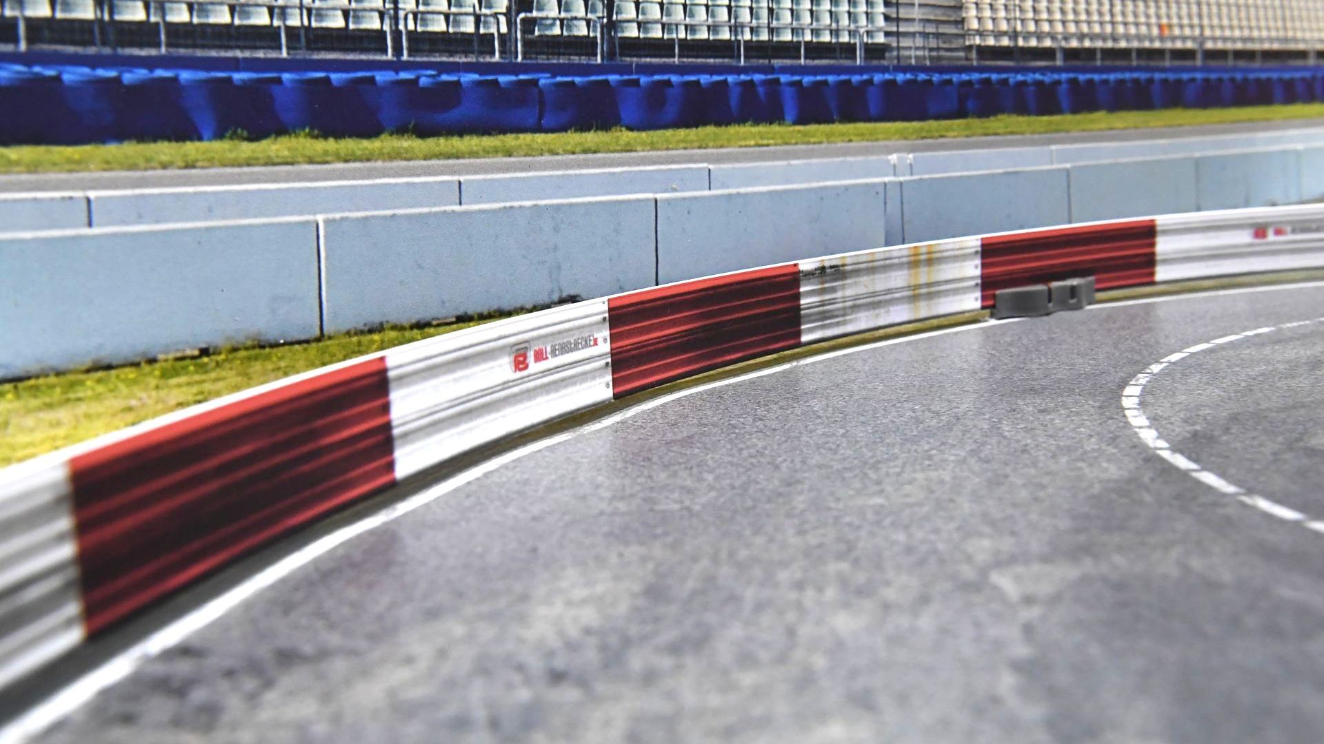 Ein weiteres durchdachtes Zubehör-Feature sind die Leitplanken. Sie sind in verschiedenen Längen erhältlich und lassen sich mittels Klebepads und flexibel einsetzbaren Halterungen auf der Strecke anbringen. Die realitätsnahe Optik – von verwitterten grauen Barrieren bis zu rot-weißen Rennstrecken-Leitplanken mit Rost- und Lackspuren – sorgt für ein zusätzliches Maß an Authentizität.